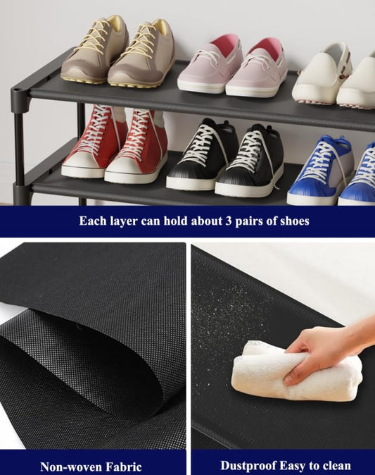 Kitsure Shoe Rack - Non-Woven Shoe Rack Shelf, Shoe Organizer for Closet, Entryway, Garage & Corridor, Stackable Shoe Shelves, 27.5" Wide - 2 Tier, Black