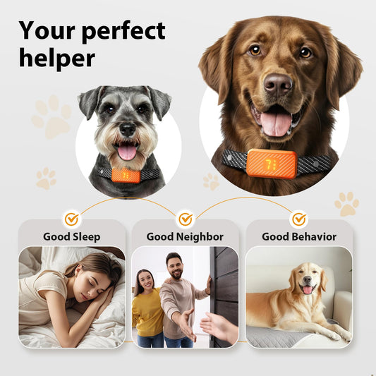 KJKZO Dog Bark Collar for Large Medium Small Dogs, Rechargeable No-Bark Collar, Smart Barking Collar, Effective Bark Collar with 7-Level Sensitivity, 3 Beep & Vibration Modes, Waterproof, Orange