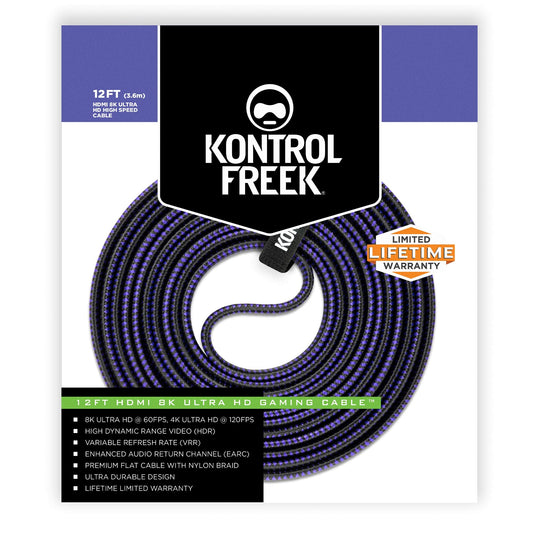 KontrolFreek 12FT (3.6m) HDMI 8K Ultra Gaming Cable Supports Ethernet, 3D, Audio Return Channel (ARC), High Dynamic Range Video and 8K Ultra HD @ 60 FPS- Black and Purple