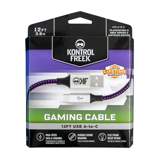 KontrolFreek USB Type-A to USB Type-C 12ft (3.6m) Ultra-Strong Cable, USB A-C Charger Cord Compatible with PlayStation 5, Xbox Series X|S, Nintendo Switch, S10/S10e/S9/S8, Note 10 9 8, Plus/S8+