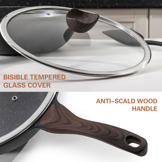 Kordisen Nonstick Wok with Lid, 12 Inch Woks & Stir-fry Pans, Granite Stone Coating for Cooking, Induction Cookware, Compatible with All Stovetops, PFOA Free