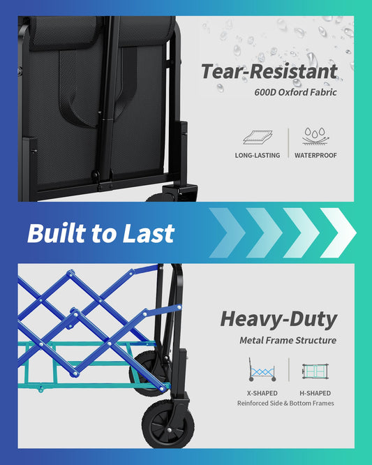 Ksend Small Collapsible Wagon with Wheels, Foldable Carts with 200lbs Load Capacity, Dog Wagon, Utility Shopping Cart for Groceries, Sports, Camping, Garden, Fishing, Black