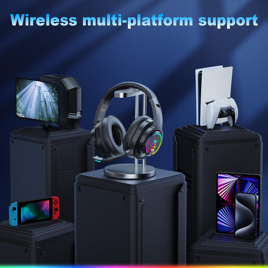 Krysenix PG3 Wireless Gaming Headset for PS4, PS5, PC - 2.4GHz 7.1 Surround Sound, Bluetooth Gaming Headphone with AI Detachable Noise Canceling Mic, 48-Hr Battery for Laptop, Switch, Mac (Black)