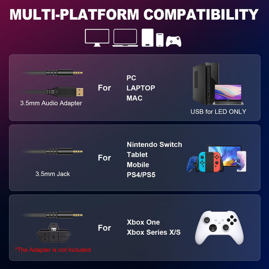 Krysenix Gaming Headset for PS4, PS5, PC, Mac, Xbox Series X, Noise Canceling Headphones with Microphone, PG2 Computer Headset with 3.5mm Jack & RGB Light Black/Blue