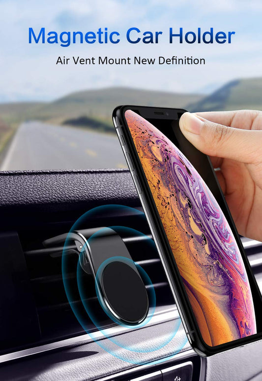 L-Shape Air Vent Magnetic Phone Mount-360°Rotating Car Holder for All Smartphones 4-7" with Super Strong Adhesion,Non-Slip Design,Silvery.