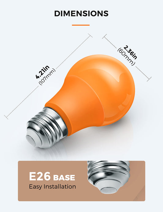 L LOHAS LED Halloween Orange Purple LED Light Bulbs Outdoor [4-Pack], 9W(60W Equivalent) A19 Orange Purple Colored Light Bulb Indoor, E26 Base, Not-Dim