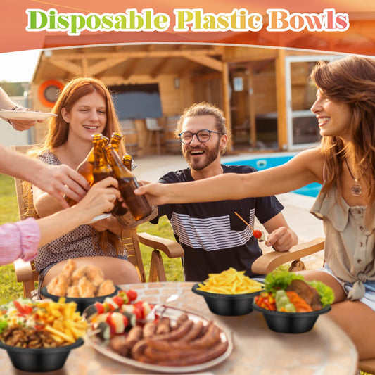 Lallisa 100 Pcs 12oz Black Disposable Plastic Bowls Halloween Dessert Cups Ice Cream Snack Salad Soup Food Serving Bowls for Halloween Party Favor Picnic