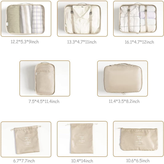 LANSKLBD 8 Set Packing Cubes for Suitcases Travel Luggage Packing Organizers,Travel Accessories Essentials Luggage Organizer with Shoe/Tioletry/Laundry Bag
