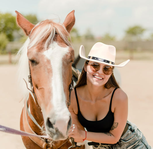 Lanzom Women Men Classic Felt Wide Brim Western Cowboy Cowgirl Hat with Belt Buckle(Medium-Large,Black)