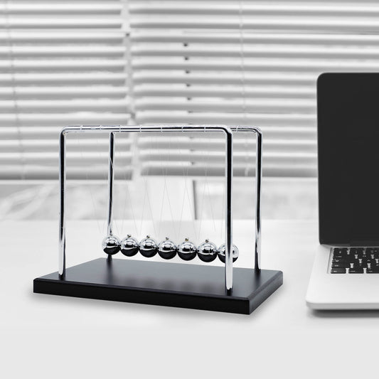 Large Newtons Cradle Pendulum with 7 Balls, 9inch Newtons Cradle Balance Balls, Science Physics Desk Toys, Office Home Desk Decoration, Calm Down Fidgets (Black Wooden Base)