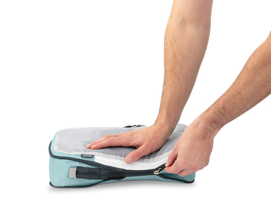 Large Packing Cube Set with See Through Mesh- Compression Packing Cubes Travel Organizers by TRIPPED Travel Gear (Dusty Teal)