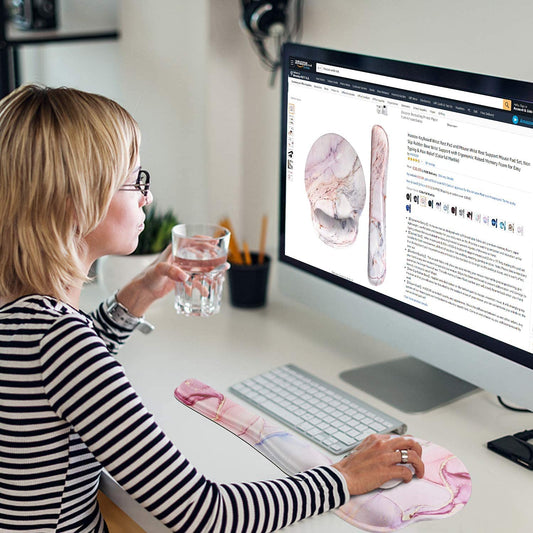 LATEEFAH Mouse Pad with Wrist Rest, 3-in-1 Gaming Mouse Pad, Keyboard Wrist Rest, Ergonomic Memory Foam Mousepad with Wrist Support for Computer Keyboard