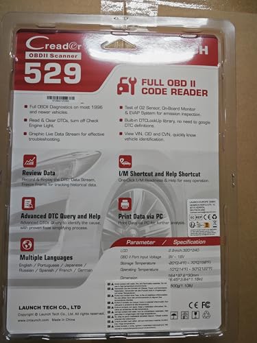 LAUNCH CR529 OBD2 Scanner Diagnostic Tool, Full OBD2 Scanner for Car, Free Lifetime Upd. Check-Egine-Light Code Reader, 5 Years. Backup, Clear Codes, One Click I/M, for DIYers with Cars After 1996
