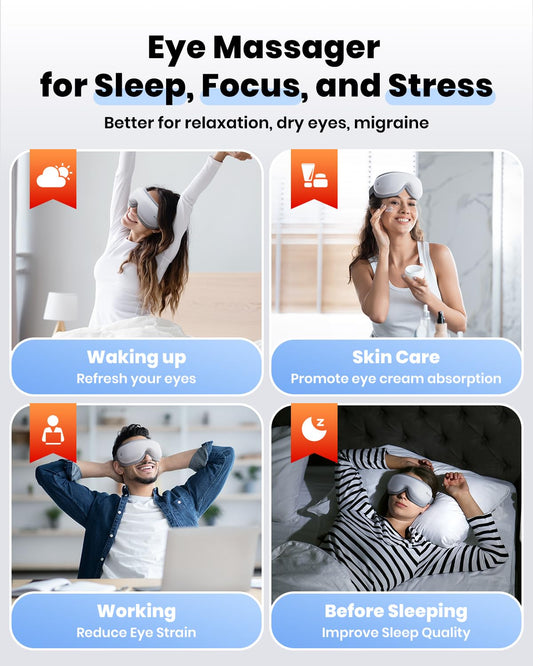 latumab Eye Massager with Heat, Heated Eye Mask with Bluetooth Music, Face Massager, Mask for Migraine & Headache Relief, Improved Sleep, Birthday Gifts for Mom Dad Women Men Her Him