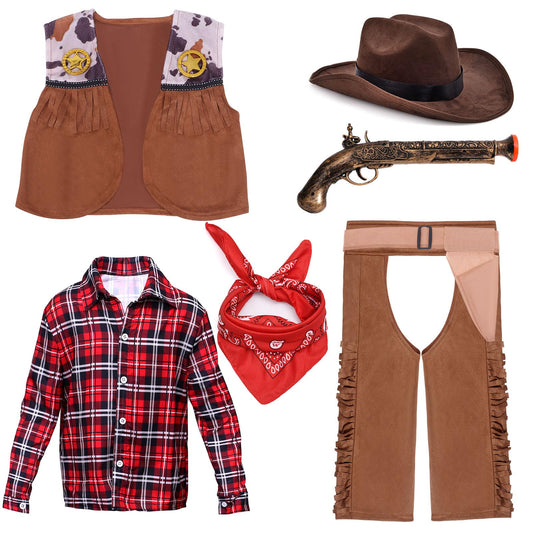 Latocos 7 PCS Kids Cowboy Costume for Boys Ages 3-10 Years Halloween Party Dress Up Role Play and Cosplay
