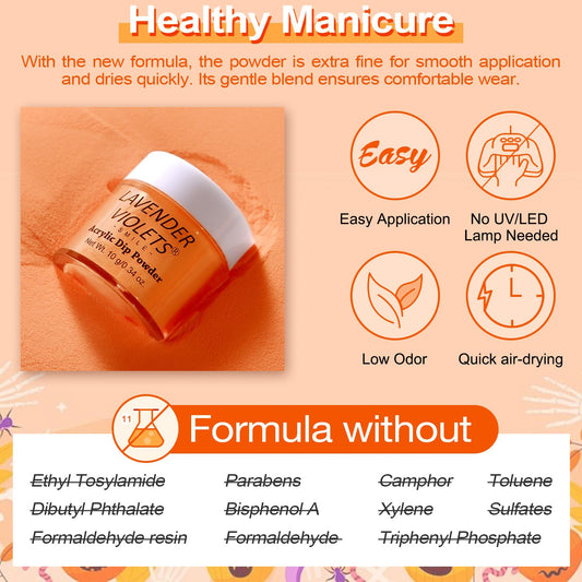 Lavender Violets 12Pcs Halloween Dip Powder Nail Kit Starter - 6 Colors Yellow Orange Color Changing Dipping Powder Liquid Set with Base & Top Coat Activator for Nail Art Manicure M206