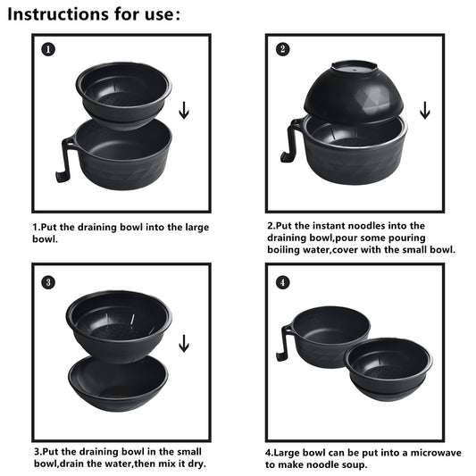 Layron Ramen Cooker Ramen Bowl Set with Chopsticks 33oz Microwave Noodle Bowl College Dorm Room Essentials for Girls for Boys Apartment Essentials-Black