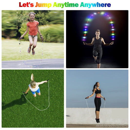 LED Jump Rope with Lights, USB Rechargeable Light Up Jumping Rope for Men Women Multi-color Glowing Skipping Rope for Light Show, 9 Ft -Adjustable