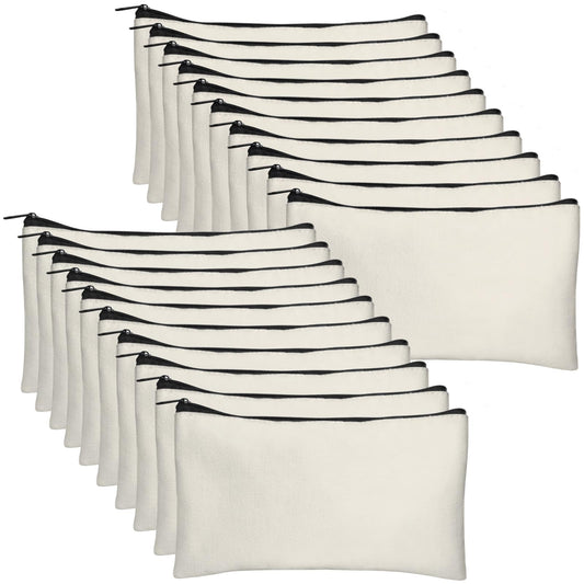 Legigo 20 Pack Blank DIY Craft Bag Canvas Pencil Case Blank Makeup Bags- Beige Canvas Pencil Pouch Bulk Canvas Cosmetic Bag Multi-Purpose Travel Toiletry Bag Canvas Zipper Bags 8.3 × 5 Inch