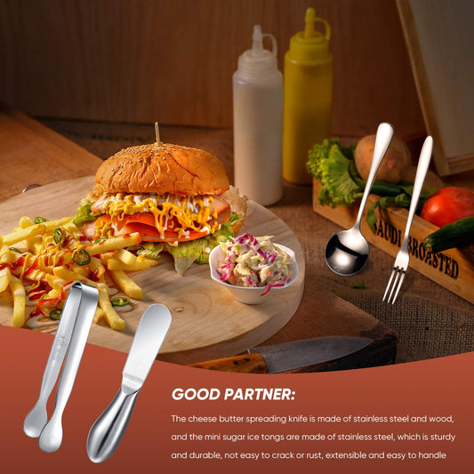 14 Pieces Charcuterie Board Accessories Cheese Spreader Knives Set Stainless Steel Charcuterie Utensils Spreader Knives Mini Serving Tongs Spoons and Forks for Cheese and Pastry Making(Silver)