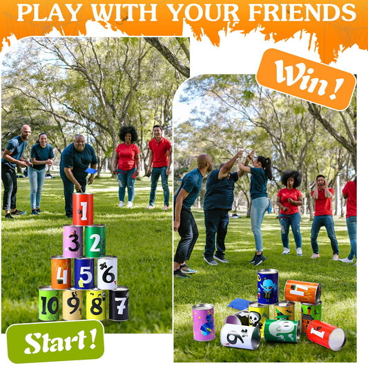 14 Pcs Halloween Party Games for Kids Adults Halloween Carnival Bean Bag Toss Games Metal Cans with 3 Bean Bags in Gift Box Boo Basket Stuffers Gifts for Holiday Trick or Treat Party Supplies