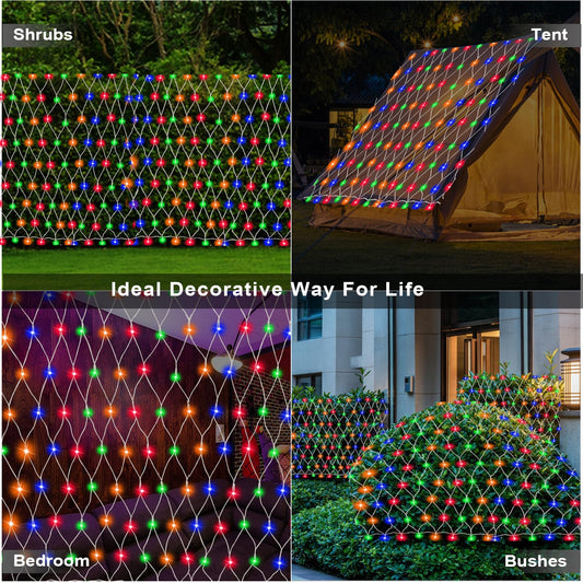 (Upgraded) Outdoor Christmas Lights, 360 LED Sturdy Christmas Net String Lights, 12x5Ft 8 Light Modes Christmas Decoration Lights for Backyards, Gardens, Bushes, Lawns, Patio, New Year - Multicolored