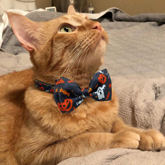 2 Pack Halloween Cat Collar with Bow Tie and Bell, Holiday Pumpkin Candy Corn Collar for Kitty Kitten Girls and Boys Cats