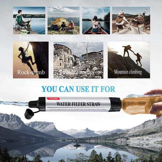 2 Pack Timain 4-Stage Filtration,High Flow Rate Water Filter Straw,Water Purifier Survival for Emergency Kits,Travel,Camping, Hiking,Fishing,Hunting (2)