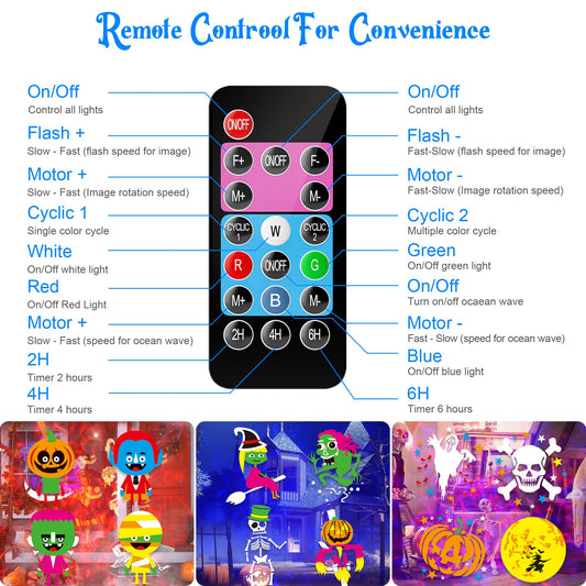 2025 Upgraded Brighter Halloween Decorations Projector Lights for Home, Display 8 Patterns at A Time (Ocean Wave & Patterns), 8 Themes Holiday Projector Halloween’ Day House Decoration Light Show