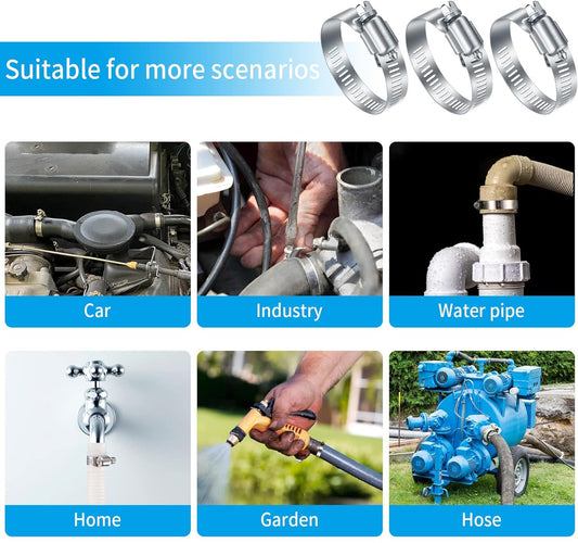20Pcs Adjustable Stainless Steel Hose Clamps Assortment Kit, 1/4-2 in (6-51mm) Worm Gear Pipe, Fuel LineHeavy Duty for Plumbing, Washing Machine, Mechanical,Garden and Automotive Hose Connections