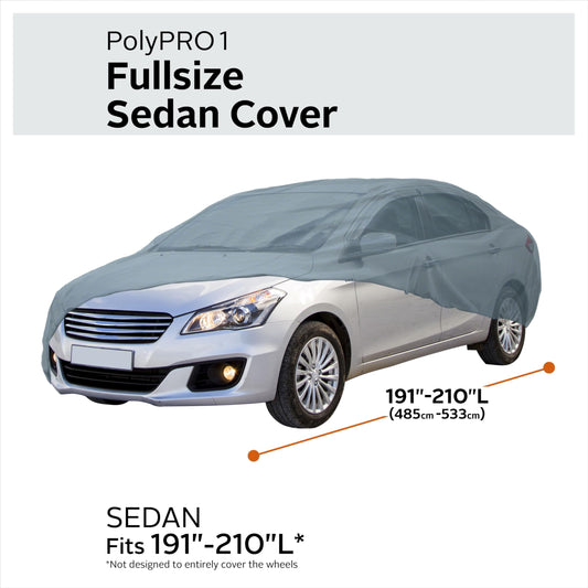 Classic Accessories Over Drive PolyPRO 1 Full-Size Sedan Car Cover, Fits cars 16' - 17'6" L