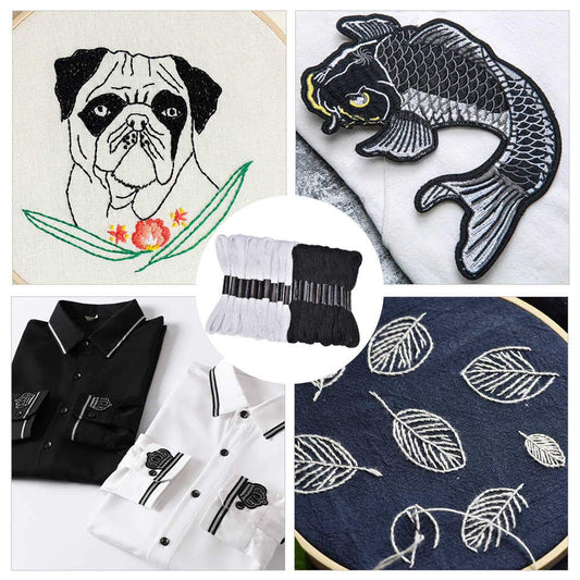 24 Skeins Cross Stitch Threads, Black and White Cotton Embroidery Floss Friendship Bracelets Floss with 12 Pieces Floss Bobbins for Knitting, Cross Stitch Project