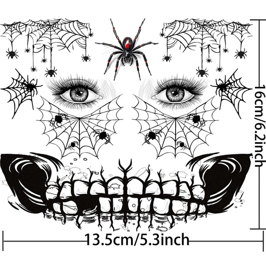 COKTAK 4 Sheet Scary Halloween Face Tattoos For Women Men Adults, Fake Wound Scars Witch Makeup For Halloween Chucky Zombie Makeup Kit, 3D Spider Web Face Tattoo Sticker Halloween Face Decals Paint