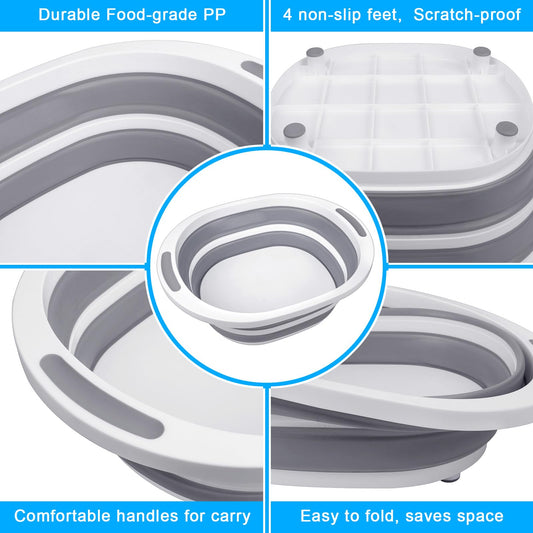 Collapsible Wash Basin, 7.5L Dish Tub Sink Basin Folding Dish Pans for Kitchen Sink, 2-in-1 Dishpan + Cutting Board, Portable Sink Dish Basin for Camping BBQ Prep Tub Washing Bin Bucket for Cleaning