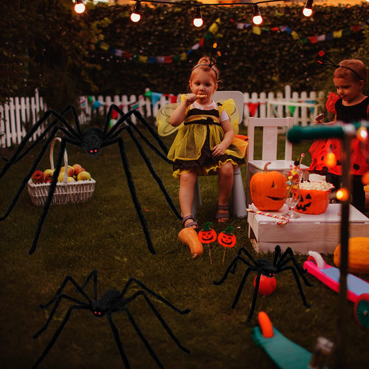 Colovis 3 Pack Halloween Giant Spider Decoration Set, Realistic 6.6FT/5FT/3FT Large Scary Black Hairy Spider Props for Indoor, Outdoor Yard, Party, Haunted House Decor