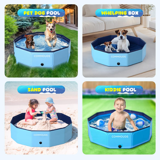 COMMOUDS Foldable Dog Pool, Collapsible Hard Plastic Dog Kiddie Swimming Pool, Portable Pet Bath Tub Wading Pools for Kids and Puppy Small Medium Large Dogs(40inch.D x 8inch.H)
