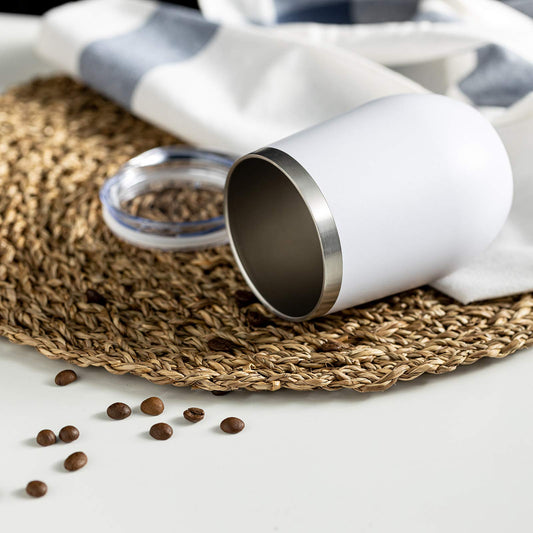 COMOOO 12oz Wine Tumbler with Lid and Straw, Stainless Steel Stemless Wine Glass, Double Wall Vacuum Insulated Wine Tumbler Cup, Cocktails,Beer,Champaign, White, 8 Pack