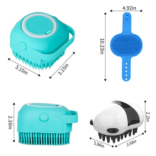 Comotech 3PCS Dog Bath Brush | Dog Shampoo Brush | Dog Scrubber for Bath | Dog Bath Brush Scrubber | Dog Shower/Washing Brush with Adjustable Ring Handle for Short & Long Hair (Blue Blue Blue)