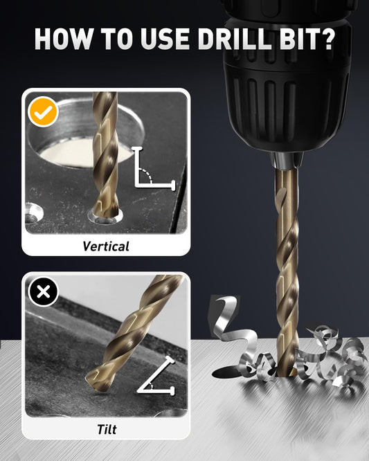 COMOWARE 21Pcs Drill Bit Set (1/16"-3/8"), M35 HSS Twist Drill Bits, Jobber Length, Straight Shank, Metal Drills bit Set for Steel, Stainless Steel/Iron/Wood/Plastic, with Metal Indexed Storage Case