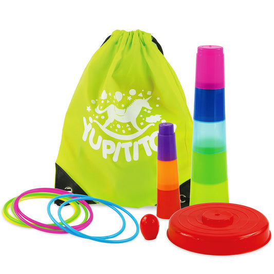 Cone Ring Toss Game for Kids with 8 Throwing Rings and Travel Bag, Colorful Tossing and Active Play Set, Quick Setup for Indoor and Outdoor Use, Heavy-Duty Plastic