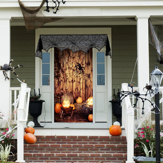 Comtraker Halloween Fireplace Mantle Decorations, Black Lace Spiderweb Fireplace Mantel Scarf Cover Garland for Festive Party Supplies Decor 18 x 98 inch (Black)