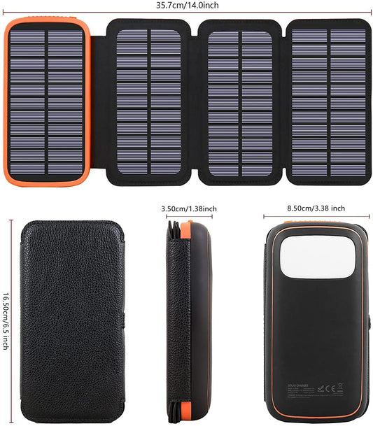CONXWAN Solar Charger Power Bank – 27000mAh USB C Solar Phone Charger with 3 USB Outputs with 4 Foldable Solar Panels Battery Pack Charger Compatible with Most Smart Phone