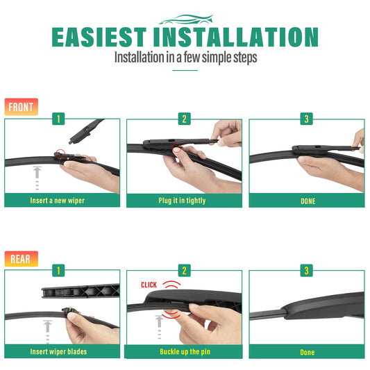 26" 22" 11" Windshield Wiper Blades Replacement for Ford Explorer 2011 2012 2013 2014 2015 2016 2017 2018 2019 2020 2021 2022 2023 2024 OEM Premium All Weather Front Rear Wipers Set (Pack of 3)