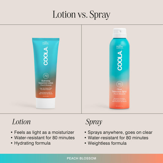 COOLA Organic Sunscreen SPF 70 Sunblock Spray, Dermatologist Tested Skin Care for Daily Protection, Vegan and Gluten Free, Peach Blossom, 6 Fl Oz
