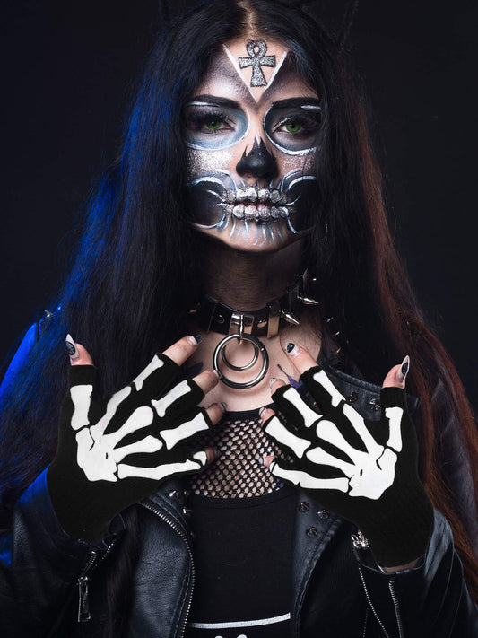 Cooraby 3 Pairs Glow in the Dark Full Finger Skeleton Gloves Halloween Skull Bone Gloves