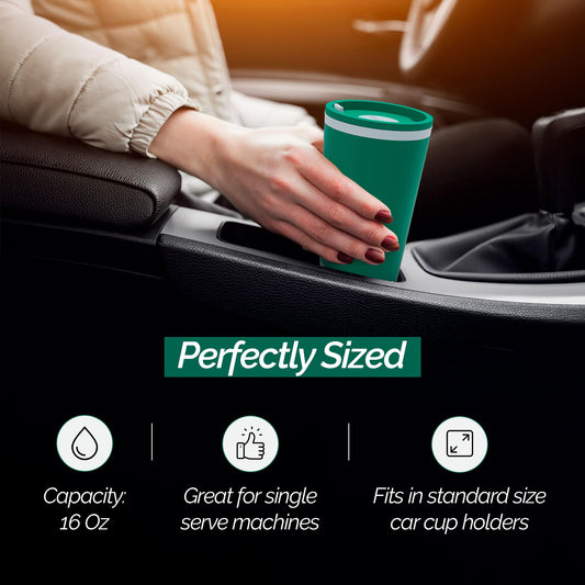 Copco Cone 16oz Insulated Travel Mug with Handle, Double Wall, Slide-Closure Lid, BPA-Free, Microwave & Dishwasher Safe, Reusable Plastic Travel Coffee Tumbler - Portable Coffee Cup (Hunter Green)
