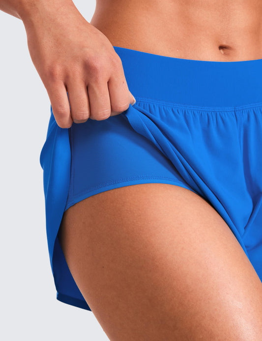 CRZ YOGA Mid Waisted Dolphin Athletic Shorts for Women 4" Lightweight High Split for Gym Workout with Liner Quick Dry Sparkle Blue Small