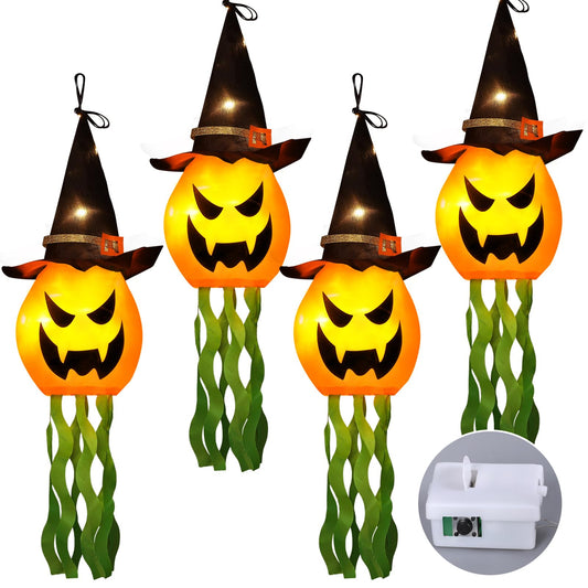 Cuorung Halloween Decorations Outdoor Decor Hanging Lighted Glowing Pumpkin Witch Hat with 3 Modes Lighted Up Scary Orange Halloween Decorations for Indoor Outside Party Yard Tree Garden (4Pcs)