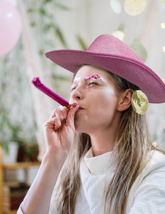 DAJOOEE Cowgirl Hat with Heart Sunglasses Glitter Cowboy Hat for Women Cosplay Bachelor Party Costume Hats (Pink)