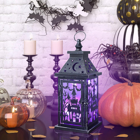 DECORKEY Halloween Decorations Indoor, 15" Decorative Haunted House Candle Lantern with 78" LED Lights(8 Modes), Hanging Spooky Halloween Lanterns for Outdoor Home Room Door Party Decor